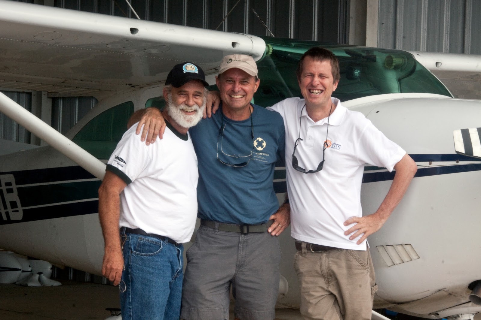 | John Wathen, SouthWings pilot, Tom Hutchings, and Industrial Scars photographer, Henry Fair |